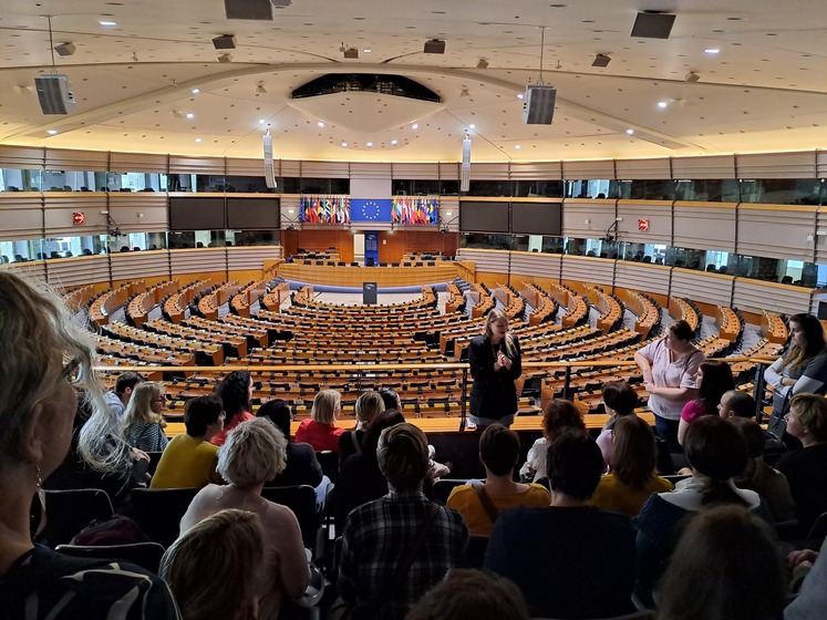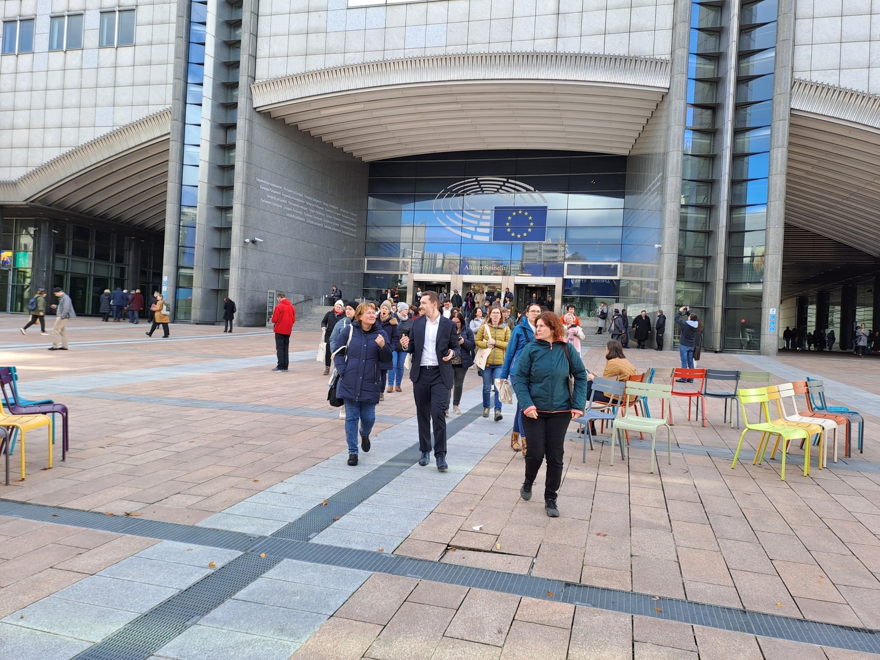 Der Besuch im Haus der Europäischen Geschichte, einem Projekt des Europäischen Parlaments, zeigte der Bäuerinnen-Gruppe den europäischen Blickwinkel auf internationale Ereignisse auf. Das Museum bewahrt einende und entzweiende Erinnerungen, es trägt die Geschichte des europäischen Aufbauwerks und seiner Grundsteine zusammen und stellt sie aus.